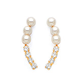 Crawler Earrings with White CZ and Pearl in 14K Gold and Butterfly Backing
