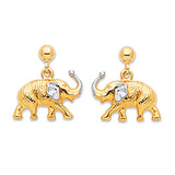 Elephant Dangling Earrings in 14K Two-Tone Gold and Butterfly Backing
