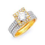 White CZ Two-Piece Pave Engagement Ring in 14K Two-Tone Gold