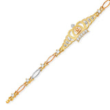 Filigree White CZ Quinceañera Bracelet In 14K Tri-Color Gold