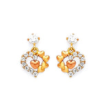 Heart Drop Earrings with White CZ in 14K Two-Tone Gold and Butterfly Backing