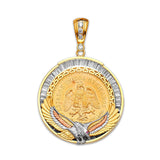 White CZ Eagle Mens Frame Pendant in 14K Tri-Color Gold