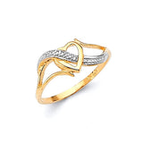 White CZ Heart Fancy Ladies Ring in 14K Two-Tone Gold