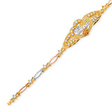 Filigree White CZ Quinceañera Bracelet In 14K Tri-Color Gold