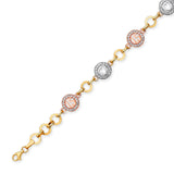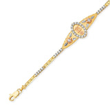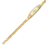 Fancy White CZ Quinceañera Bracelet In 14K Yellow Gold with Tri-Color ID