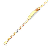 6" inch Fancy Kids Heart Border ID Bracelet In 14K Tri-Color Gold