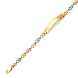 6" inch Fancy Kids Heart Border ID Bracelet In 14K Tri-Color Gold
