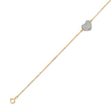 Adjustable 7"-8" White CZ Ladies Heart Charm Bracelet In 14K Two-Tone Gold