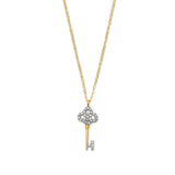 Adjustable 17"-18" White CZ Charm Necklace in 14K Two-Tone Gold