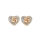 Heart Stud Earrings with White CZ in 14K Tricolor and Butterfly Backing