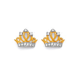 Tiara Stud Earrings with White CZ in 14K Gold and Butterfly Backing