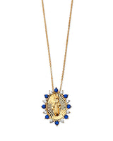 Adjustable 16.5"-18" Blue & White CZ Guadalupe Charm Necklace in 14K Gold