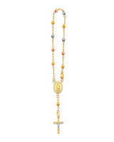 Beaded Ladies Crucifix Rosary Bracelet In 14K Tri-Color Gold