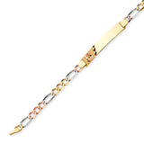 Figaro Quinceañera Border ID Bracelet In 14K Tri-Color Gold