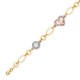 White CZ Quinceañera Charm Bracelet In 14K Tri-Color Gold