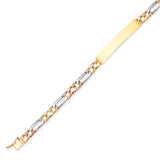 Figaro Unisex ID Bracelet In 14K Tri-Color Gold
