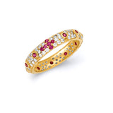 Red & White CZ Cross Ladies Ring in 14K Gold