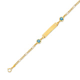 6" inch Blue & White Enamel Eye Kids ID Bracelet in 14K Gold