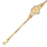 Adjustable 7-8 Inch Fancy White CZ Quinceañera Bracelet in 14K Gold