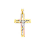 White CZ Jesucristo Pendant in 14K Tri-Color Gold