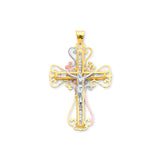 White CZ Jesucristo Cross Pendant in 14K Tri-Color Gold