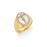 White CZ Jesucristo Mens Ring in 14K Tri-Color Gold