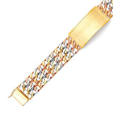 Figaro Mens Border ID Bracelet In 14K Tri-Color Gold