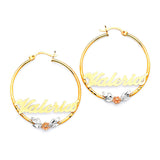 Flower Personalized Hoop Earrings in 14K Tri-Color Gold