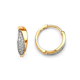 Huggie Earrings with White CZ in 14K Two-Tone Gold