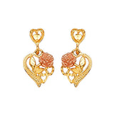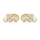 Elephant Dangling Earrings in 14K Two-Tone Gold and Butterfly Backing