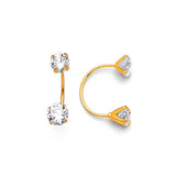 Telephone Stud Earrings with White CZ in 14K Gold and Screw Backing