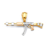 White CZ Gun Mens Pendant in 14K Tri-Color Gold