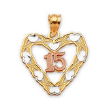 Heart Quinceañera Pendant in 14K Tri-Color Gold