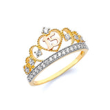 White CZ Tiara Ladies Ring in 14K Tri-Color Gold