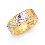 Red & White CZ Lucky Charm Ladies Ring in 14K Tri-Color Gold