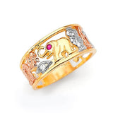 Red & White CZ Lucky Charm Ladies Ring in 14K Tri-Color Gold