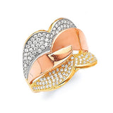 White CZ Fancy Ladies Ring in 14K Tri-Color Gold