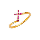 Red & White CZ Cross Ladies Ring in 14K Gold