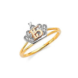 White CZ Tiara Ladies Ring in 14K Tri-Color Gold