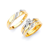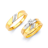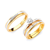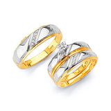 0.05 Carat Diamond Three-Piece Diamond-Cut Wedding Ring in 14K Two-Tone Gold