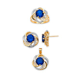 Blue CZ Ladies Three-Piece Set in 14K Two-Tone Gold