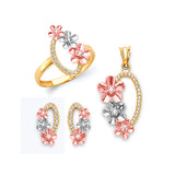 White CZ Flower Ladies Three-Piece Set in 14K Tri-Color Gold