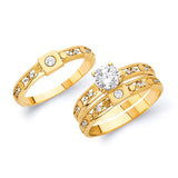 White CZ Three-Piece Diamond-Cut Wedding Ring in 14K Two-Tone Gold