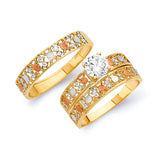 White CZ Three-Piece Wedding Ring in 14K Tri-Color Gold