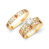 White CZ Three-Piece Wedding Ring in 14K Tri-Color Gold