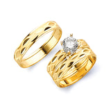 White CZ Three-Piece Wedding Ring in 14K Gold