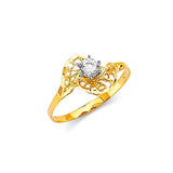 White CZ Center-Stone Ladies Ring in 14K Gold
