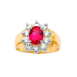 Red & White CZ Center-Stone Ladies Ring in 14K Two-Tone Gold