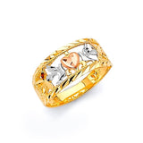 Blue & White CZ Dove Ladies Ring in 14K Tri-Color Gold