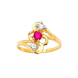 Red & White CZ Three-Stone Ladies Ring in 14K Gold